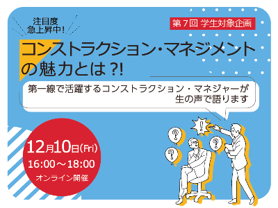 第7回 学生対象企画『注目度急上昇中!コンストラクション・マネジメントの魅力とは?!』を開催します
