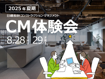 今日の建設プロジェクトはますます複雑化しており、透明性や説明責任の確保が求められています。そのため、建設プロジェクトのマネジメントを担うCM(コンストラクション・マネジメント)の重要性が高まっています。今回のセミナーやワークショップでは、学生の皆さんにCMの仕事を体験していただき、その魅力やキャリアの可能性を感じてもらうことを目的としています。参加にあたっては、建築に関する基本的な知識が必要ですが、コンストラクション・マネジメントの専門的な知識がなくてもご参加いただけます。皆様のご参加をお待ちしております。就業体験内容コンストラクション・マネジメントとはどんな仕事なのかを体験していただくプログラムです。座学的なセミナー、ワークショップを通して、私たちの仕事の疑似体験を実際にしていただきます。ワークショップは、第一線で活躍する若手コンストラクション・マネジャーと共に行います。また、個別相談会や懇親会もあります。開催概要■日程2025年8月28日(木)~8月29日(金)の2日間1日目 12:00~18:10 2日目 9:10~18:00※1日目各自昼食後集合、2日目は1時間昼食休憩あり※日程が変更となる場合があります。予めご了承ください。■体験職種コンストラクション・マネジャー(以下「CMr」)■開催地当社大阪オフィス■内容1日目 セミナー・CM体験ワークショップ・懇親会2日目 CM体験ワークショップ・個別相談会※内容が変更となる場合があります。予めご了承ください。■交通費・宿泊費・日当当社規定に準じて支給応募資格・2027年3月に大学院又は四年制大学を卒業見込みの方・2日間とも参加できる方