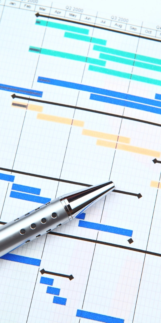 また、意思決定のタイミングやステークホルダーとの調整要所をあらかじめ織り込むことで、実行可能かつ柔軟性のあるスケジュール設計につなげます。マスタースケジュールは単なる工程表ではなく、プロジェクトの成功を左右する「戦略の骨格」といえる存在です。NCMは、中立的かつ俯瞰的な立場から、最適な進行計画の立案を多角的に支援します。