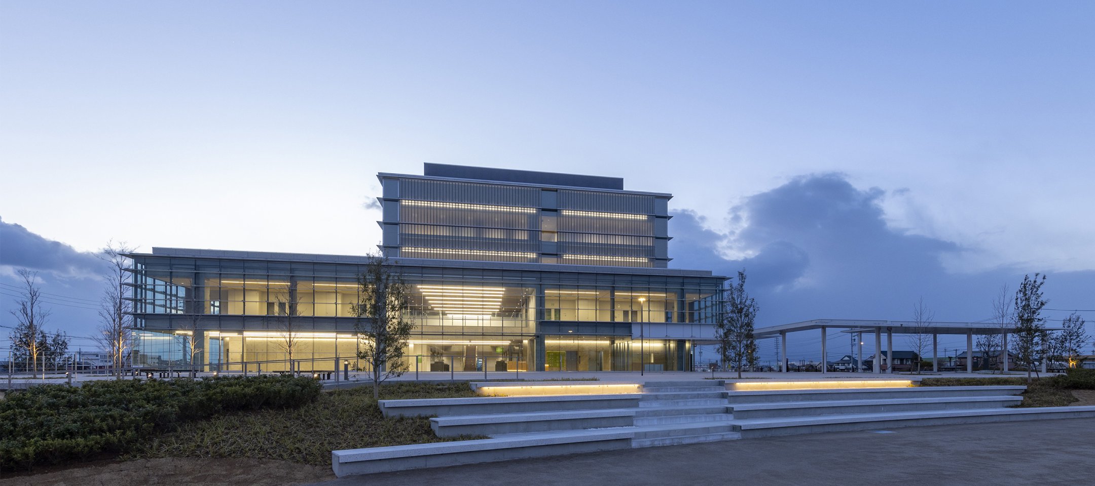 2010年に愛知県海部郡の七宝町、美和町、甚目寺町の3町が合併しあま市が誕生しました。合併以降各旧町庁舎に分散していた行政機能を集約し、新たな敷地に新市庁舎を建設したプロジェクトです。防災機能、市民の利便性、市民交流、環境配慮、経済性の5つのコンセプトに基づいて事業が進められました。また敷地が海抜0m地域であることから2m以上の盛土を行い、普段は緑豊かな環境でありつつ、有事の際は中枢防災拠点として機能する「みどりの丘」として整備しています。