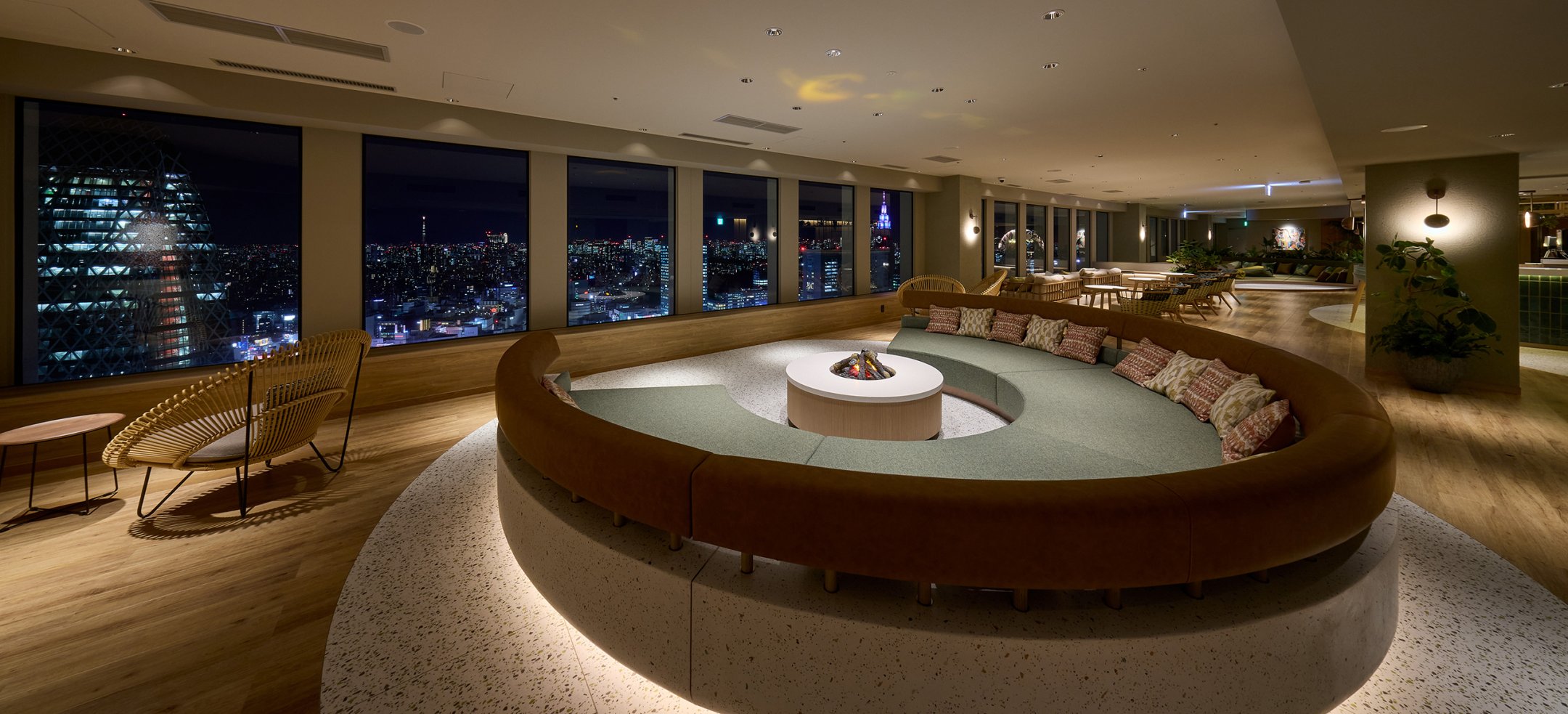 京王プラザホテル新宿本館の47階部分の改修プロジェクトです。「“思い思いのスタイルで、思い思いに過ごす、あなたの居場所」をデザインコンセプトにした「SKY PLAZA IBASHO」として、「Library」「Lounge」「Garden」「Park」「Multipurpose」「Hall」の6つのテーマを設定したゾーンに分け、それぞれのテーマに基づいたデザインで改修を実施しました。