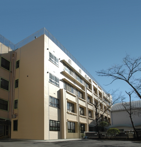 校舎は1960年から64年にかけて建設され、構造体の耐震性能の確保が求められていました。教室棟という性格上、採光などの教育環境を損ねることなく、また伝統と歴史ある校舎の美観・イメージを損ねないことを考慮し、PCアウトフレームによる補強を採用しました。工事は、比較的生徒の少ない夏休み・冬休み・春休みを中心に行い、学校行事に影響を及ぼさないように、工程の調整・管理を行いました。