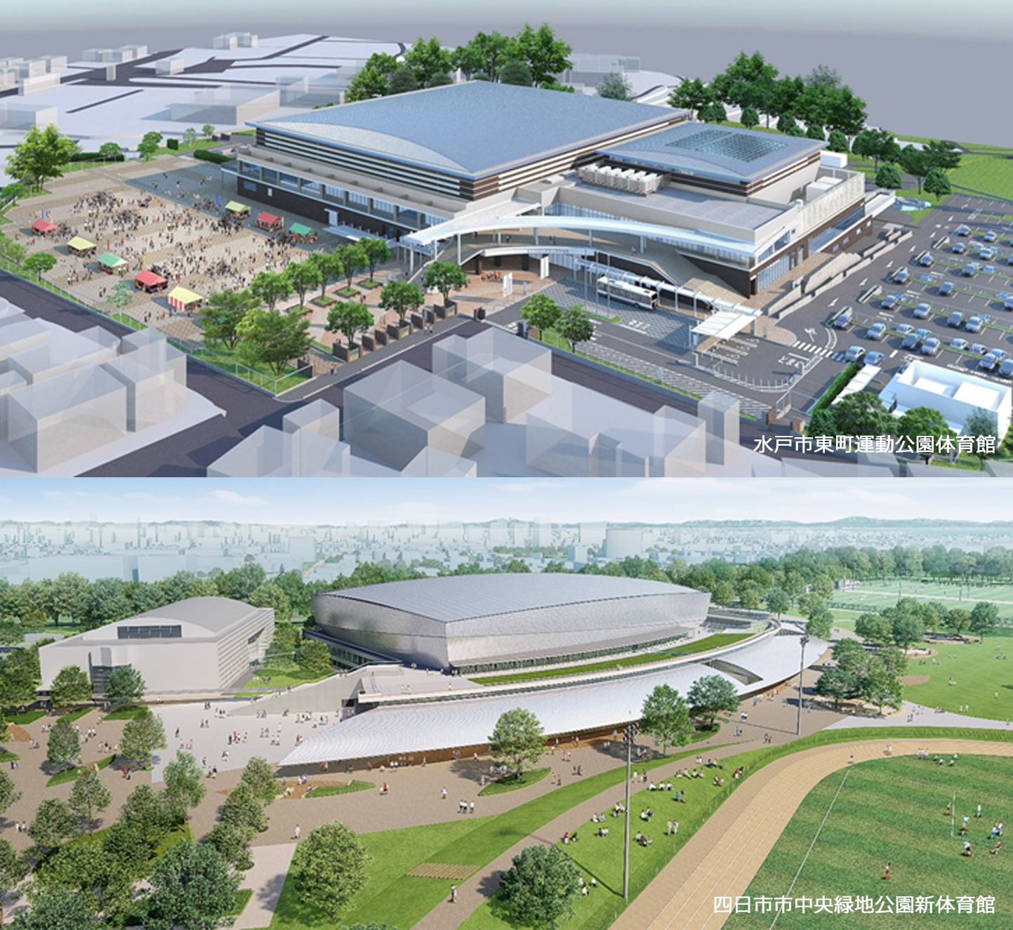 水戸市東町運動公園体育館 四日市市中央緑地公園新体育館