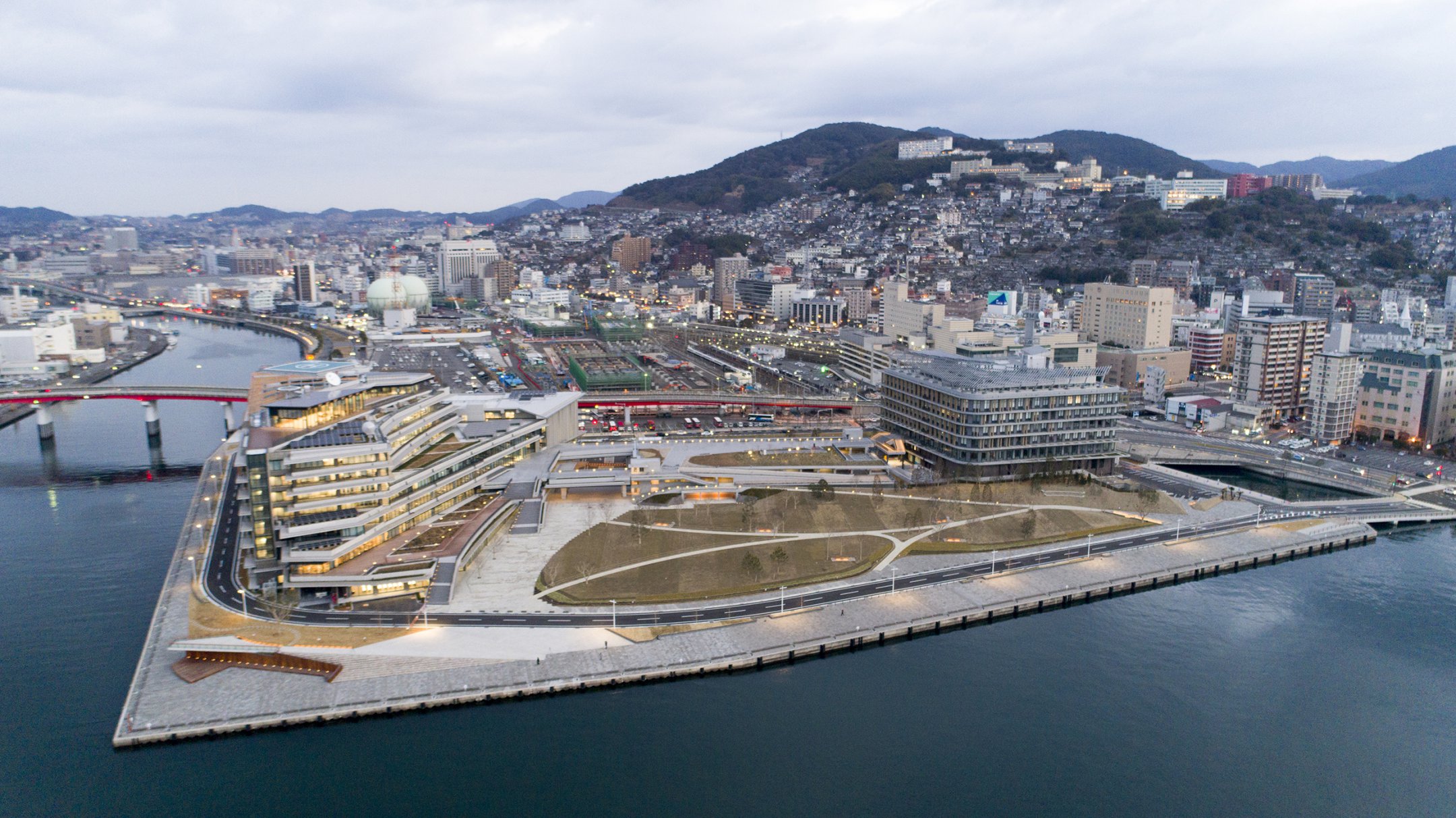県庁舎の各棟間(行政棟・議会棟・警察本部庁舎・駐車場棟)及び漁港施設工事(防災緑地工事)との工事間調整支援業務を行い、発注者・施工者・工事監理者等すべての関係者に対し、各工事で共用する仮設ヤードの調整を中心に当面の課題を明確化しました。