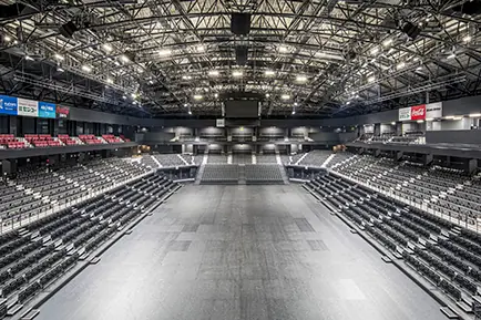 アイスリンクは国際スケート連盟が推奨する30m×60mの規模を備え、バスケットボールにおいてはBプレミア基準に準拠する改修が行われています。