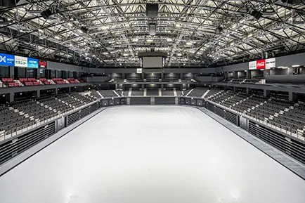 既設アリーナを常設アイスリンクへと改修するとともに、厚さ約2cmの断熱フロアを敷設することで、スケートのみならず他のスポーツ競技やコンサートなど多様な用途にも対応できる多機能型アリーナの実現に貢献しました。