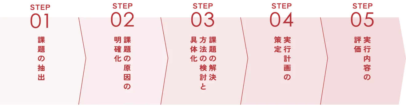 課題の解決方法の検討と具体化までで、おおよその施策は固まりますが、さらにスケジュール設定や社内のリソースの検討等を行い、施策の実行計画を策定します。