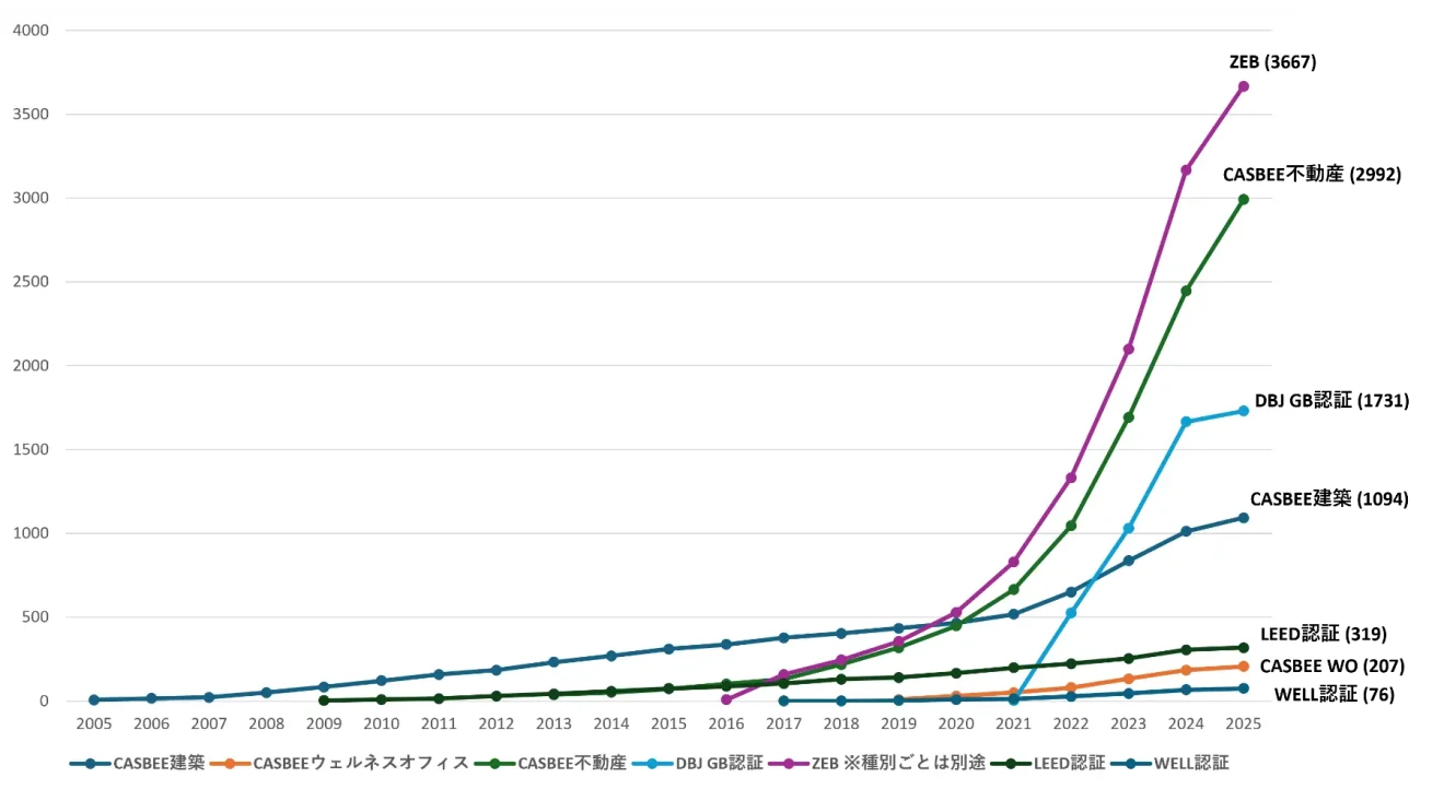 CASBEEは、一般社団法人日本サステナブル建築協会(JSBC)により開発された、建築や街区・都市の環境性能を総合的に評価する日本国内の認証制度です。