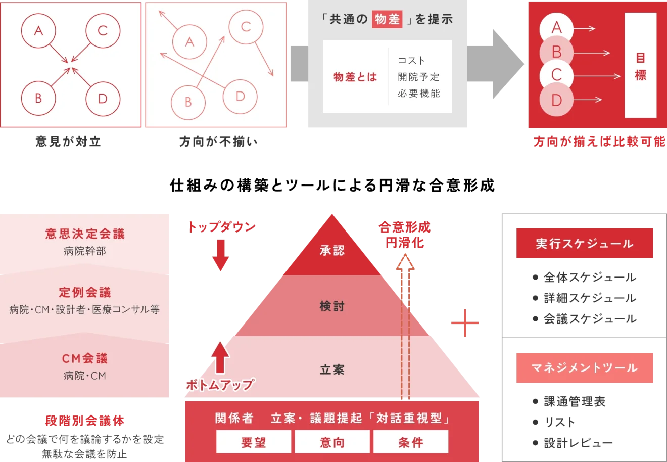 NCMは多くのの医療・福祉施設の建替え計画に関与したことで、医療・福祉機関の意思決定や合意形成のプロセスを理解しています。