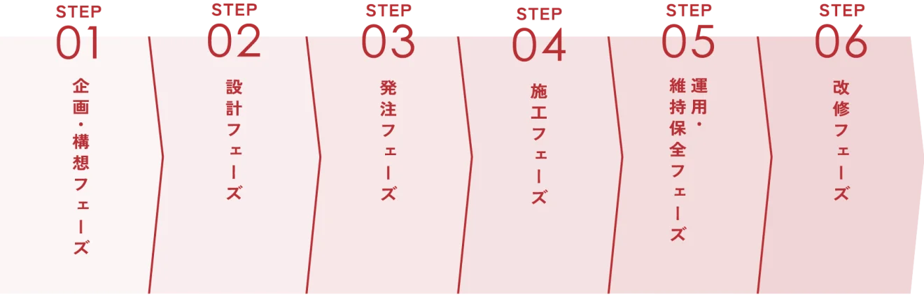建設プロジェクトをスタートさせる初期段階において、漠然としたゴールを明確化することや実現性の検証を⾏う必要があります。NCMでは、豊富な実績に基づく技術的知⾒を活かし、事業主が実現したい内容を企画・具体化し、ゴールの「⾒える化」を⽀援します。