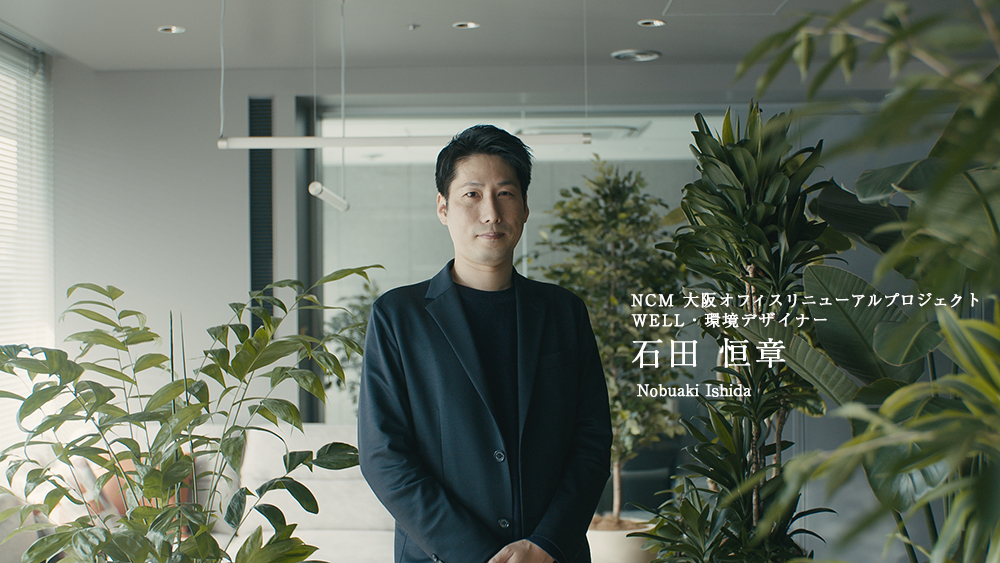 私たちNCMが担っているコンストラクション・マネジメント業務は、人がたくさん集まる「場」のコンサルティングの事業と捉えることができると思います。そういう意味で今回の自社オフィス改修においてNCMが考える新しい働き方や新しいオフィスの在り方をメッセージとして社内外に発信していかないといけないと思っています。これからも私はこの大阪オフィスのようにウェルネスやサステナビリティへの姿勢が感じられる空間をつくっていきたいですし、このオフィスを見て実際に感じてもらうことで、こういう考え方や取り組み方があるんだと気づいて、そこから会話が生まれたらうれしいですね。このオフィスに集まれば健康的であったりモチベーションがあがったり…そういう仕掛けをたくさんつくって、オフィスに来ると「元気になった」「調子がいい」、そう感じてもらえる空間を目指していきたいと思います。