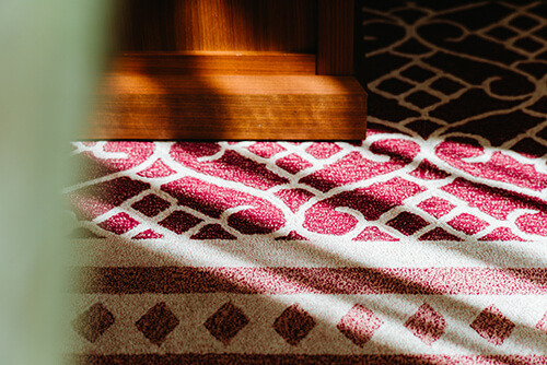今いる貴賓室は、基本計画の時点で復元すると決まっていましたが、貴賓室の内装の復元については後から決まりました。その内装の復元にも苦労がありました。例えば、この絨毯は内装のデザイナーがモノクロの史料写真から色を再現して柄を検討するなど、すごく力を入れて復元したんですが、この貴賓室の床を1枚で敷き詰められる大きさだったので、部屋に入れるのにも苦労しました。また、このテーブルも大きな一枚板の天板のため通常の経路ではどうしても搬入できず、部屋の窓をはずすなどの工夫をして入れました。